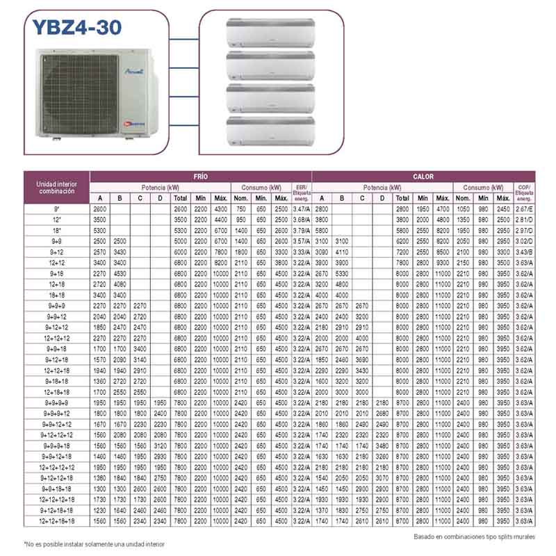 -DC Inverter y compresor con tecnologia de reducción de onda sinusoidal. -Refrigerante ecológico R-410 A. -Alta eficiencia energética, clase A/A. -Modo automático/frío/calor/deshumectación. -Muy silenciosos. -Lógica avanzada para un control preciso de la temperatura. -Posibilidades de combinaciones 2x1, 3x1 y 4x1.